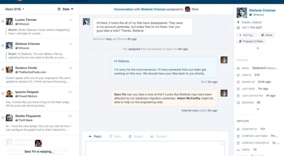 Intercom’s Team Inbox displays all chats from customers who have accessed the Intercom live chat. The inbox can be accessed by anyone on your team, though you can also set separate inboxes for different categories such as sales and support. Intercom’s custom bots can qualify leads automatically and route them to the correct team member. Inbox also lets you communicate with your teammates to collaborate on questions and share schedules.