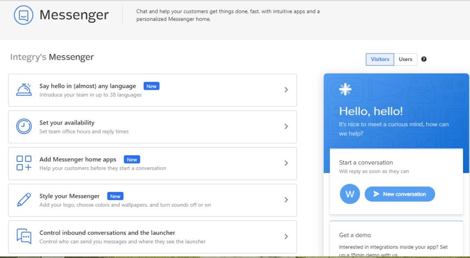 Intercom is a customer messaging platform that allows you to connect with customers directly from your homepage. Its name is a play off of an “intercom system” as Intercom software is likewise meant to facilitate communication between people in different locations. The intercom chat function can be set up to send a custom message to customers who click on your page. From there, customers can reply and be directed to seek additional information, schedule a meeting, or access live chat with a customer service agent.
